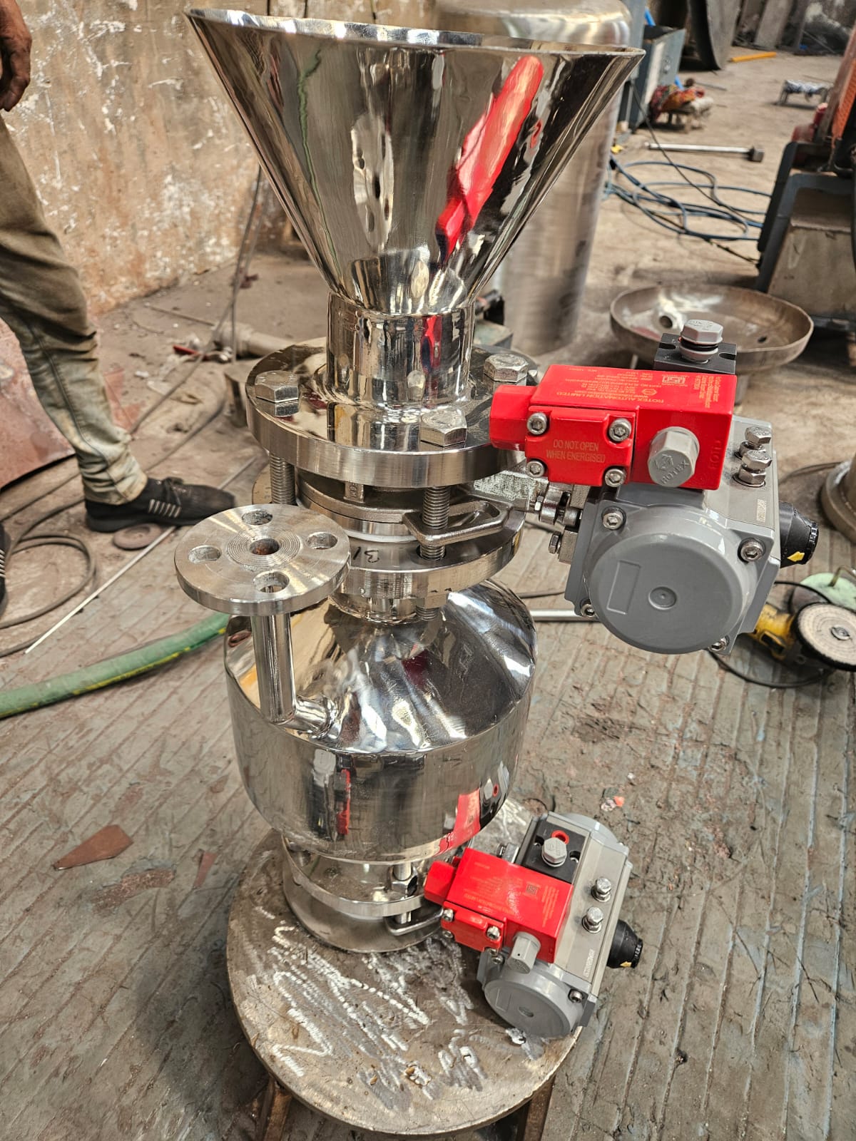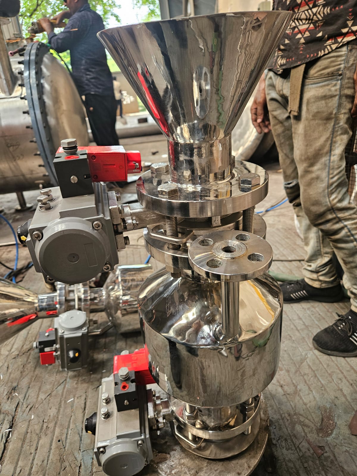 The Double Valve Charging System (DVCS) is a critical accessory for the API and Bulk Drug industry, as listed in our catalog. It is designed to charge powders into reactors or vessels in a completely closed loop, ensuring zero exposure to the operator and environment. This system effectively prevents dust generation and cross-contamination during the charging process.