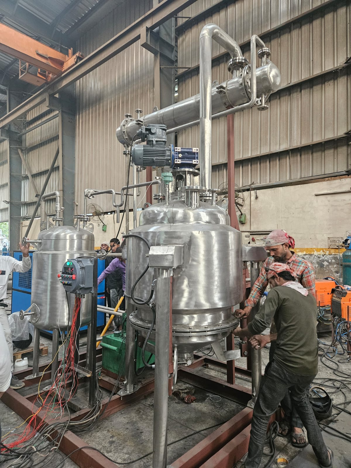 The Solvent Recovery Plant is an essential system for API and Chemical industries to recover expensive solvents and reduce wastage. As illustrated in our API process diagram, the system comprises a Shell & Tube Heat Exchanger (Condenser) connected to a Receiver Tank. Vapors from the Reactor or Dryer are condensed into liquid and stored in the receiver for reuse, making the process cost-effective and eco-friendly.